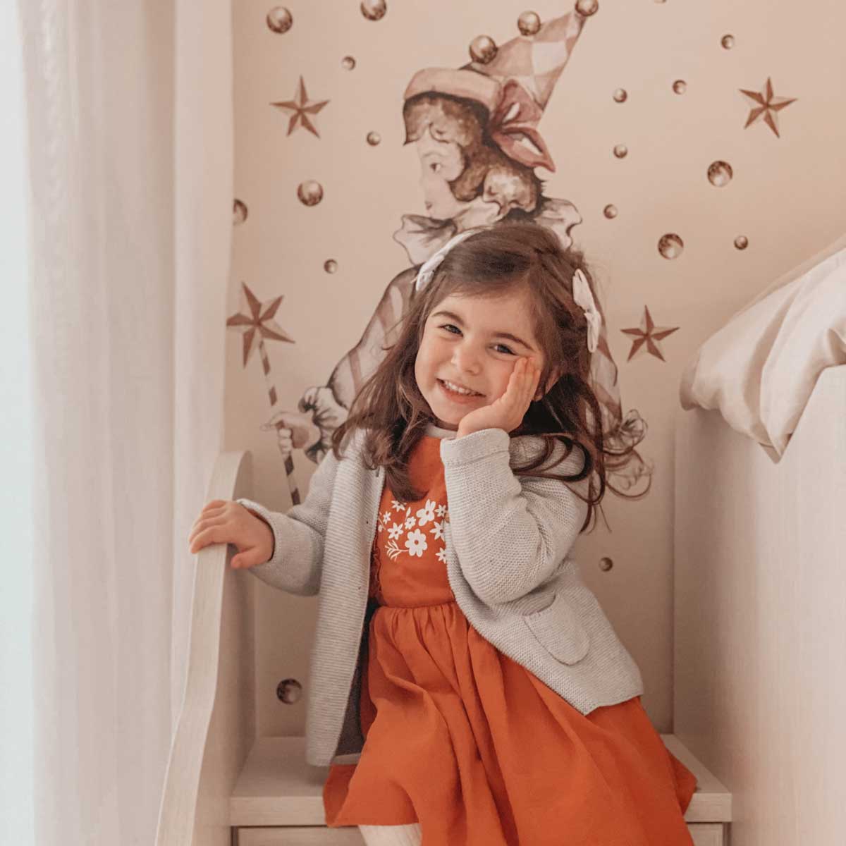 Diese Kollektion umfasst einen französischen Pierrot, ein Schaukelpferd, Holzklötze, Kreisel, Lederrollschuhe und Hula-Hoop-Reifen! Sogar unser geliebtes Kaninchen ist in der Rolle eines Zauberers mit dabei.