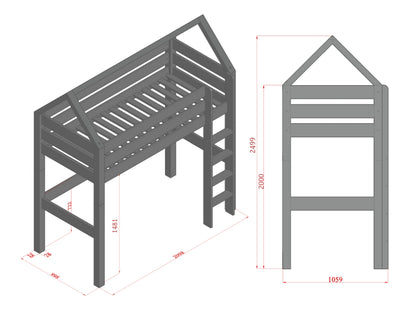 Verwandeln Sie das Kinderzimmer Ihres Kindes mit dem Manaslu House Hochbett in einen Traumraum. Dieses robuste Holzbett vereint ein verspieltes Hausdesign mit einem praktischen Hochbett – ideal, um Platz in kleineren Zimmern zu sparen.