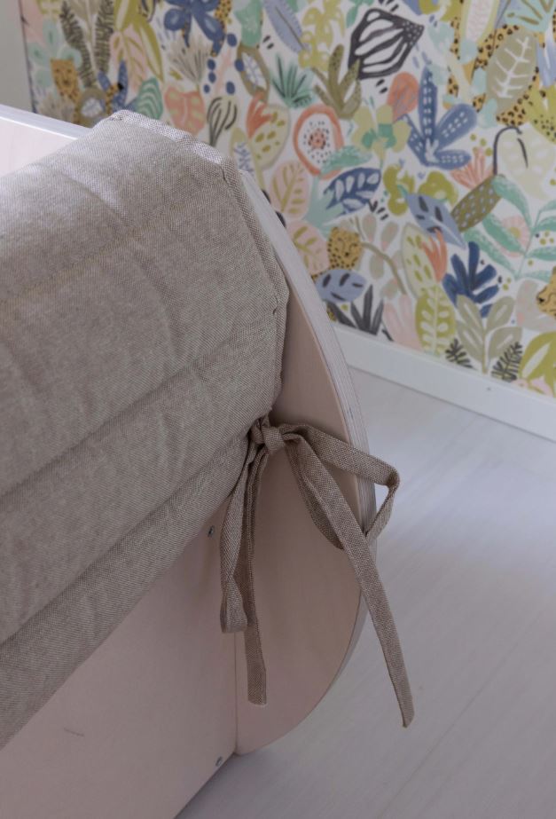 Die KANTO-Bank ist schon für sich genommen ein multifunktionales Schmuckstück, doch mit dem NAAVA-Kissen wird sie zu einer richtig gemütlichen Sitzecke. Dieses weiche, maßgefertigte Kissen bietet zusätzlichen Komfort – perfekt für kurze Pausen, zum Vorlesen oder einfach zum Entspannen. Dank seiner eleganten Oberfläche und der natürlichen Farbtöne fügt sich das NAAVA-Kissen nahtlos in jedes Kinder- oder Wohnzimmer ein.